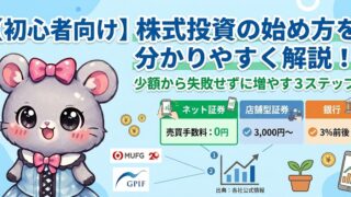 2026年最新版!投資初心者が知るべき株式投資の始め方を徹底解説。三菱UFJ銀行の金利やGPIF(年金運用)の4.71%という実績を根拠に、なぜ今新NISAやネット証券が選ばれるのかを比較画像で分かりやすく紹介します。失敗しない第一歩をここから。