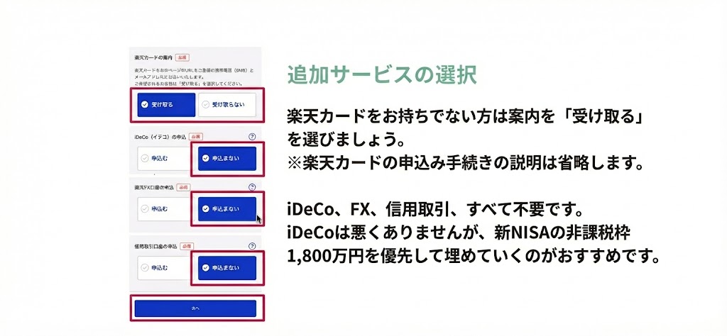 ③「iDeCo」「楽天FX」「信用取引口座」は申し込む?